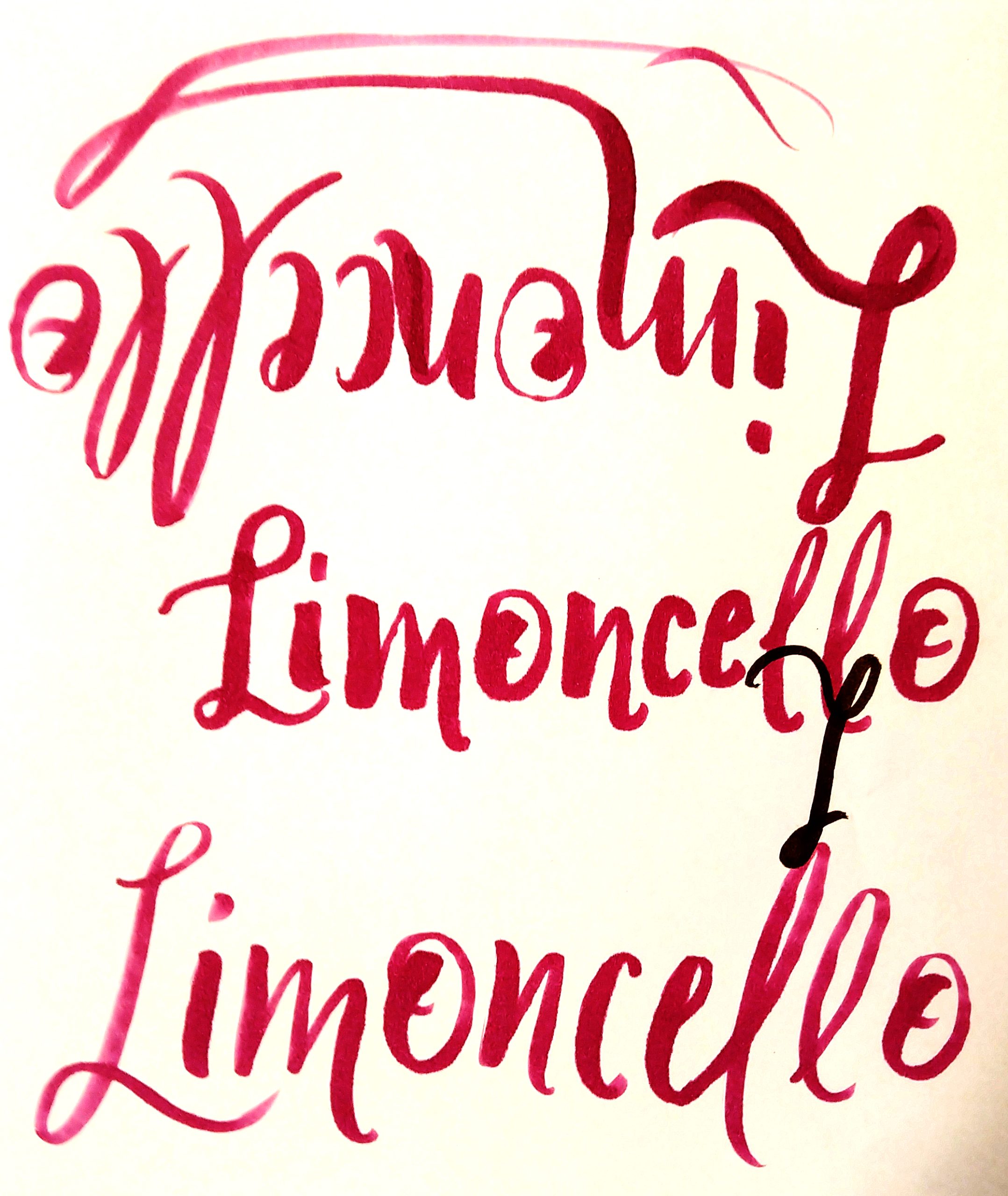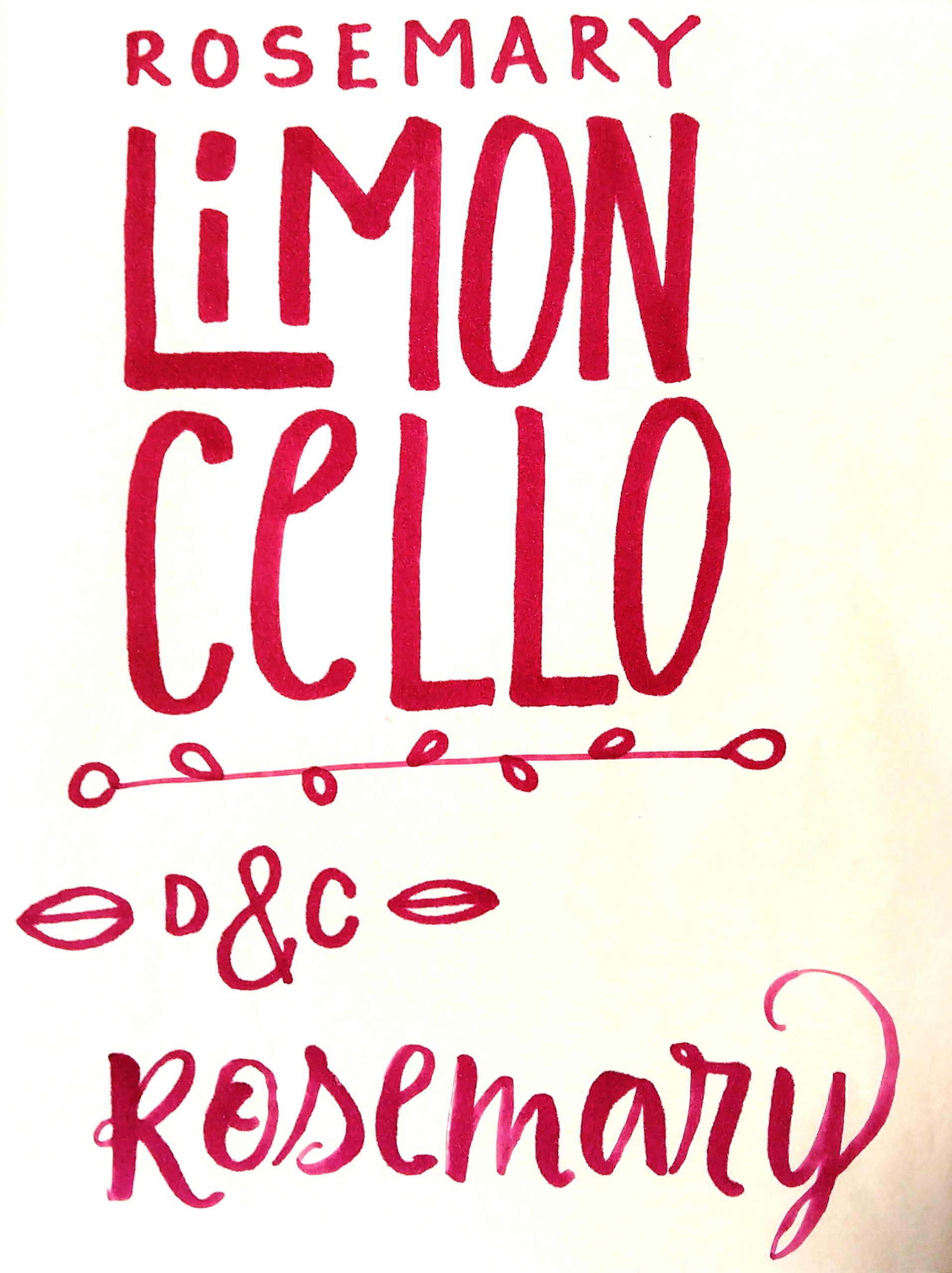 My husband and I made Limoncello for gifts. I created the label. I painted a lemon with acrylic and used Tombow markers for the hand lettering. I’ve included images of some of the iterations.